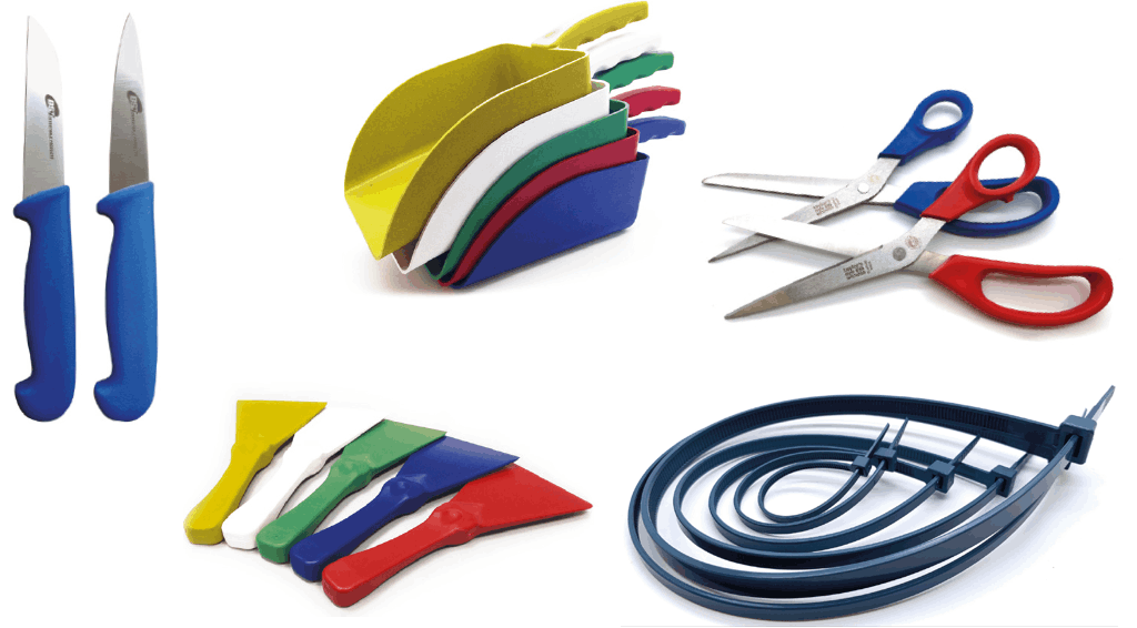 Cuchillos, baldes, jabas, palas, tijeras, cuchillas, amarras y mucho más. Aprobado por la FDA y EU, cumplimiento de los lineamientos ISO y BRCGS.